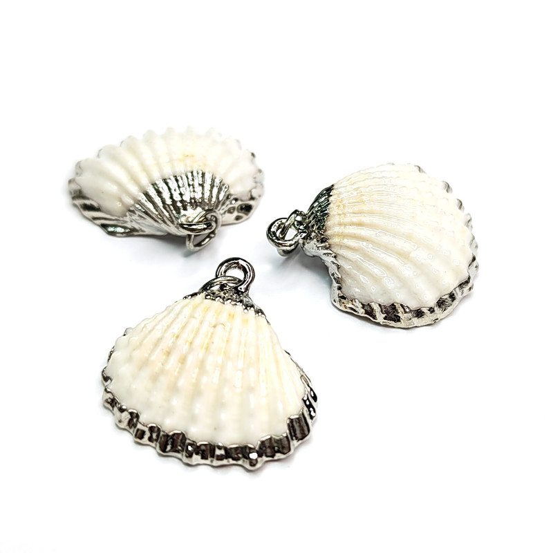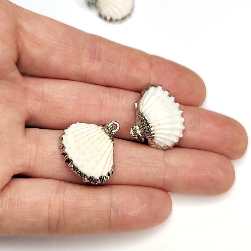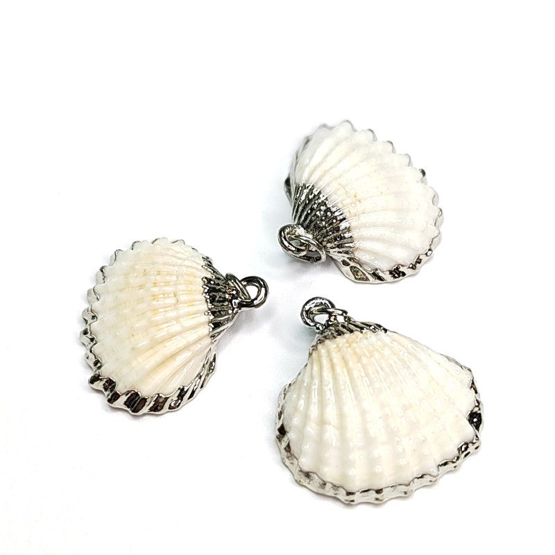 Подвеска из натуральной белой ракушки, с серебристым покрытием
