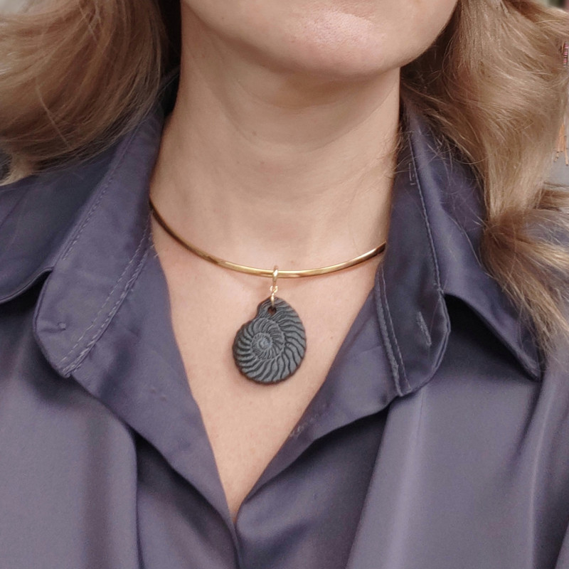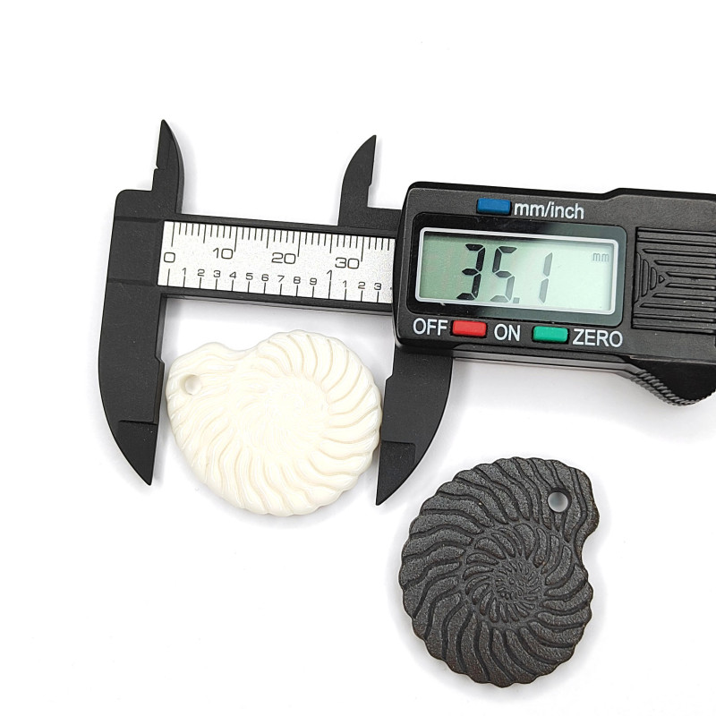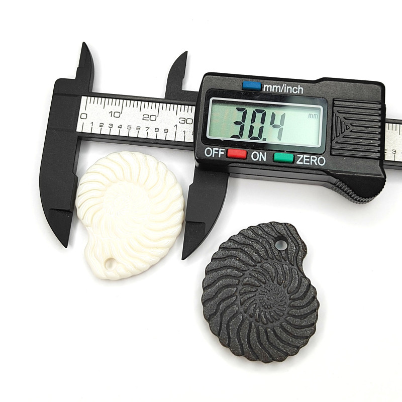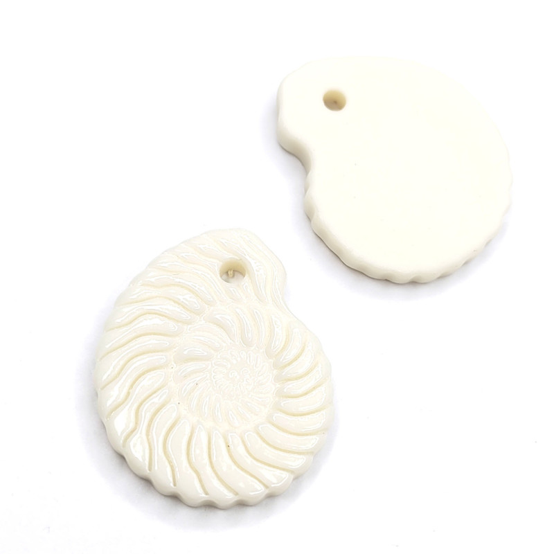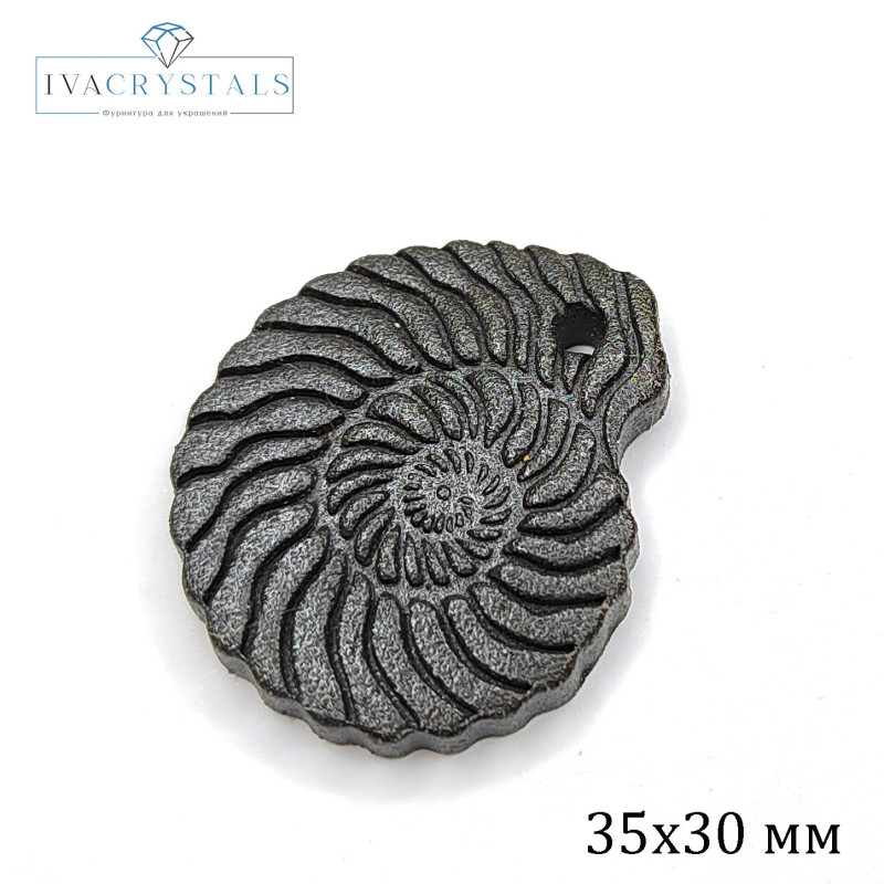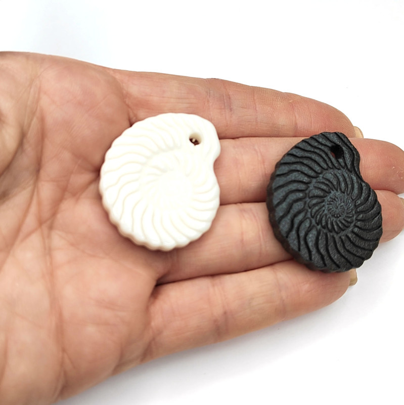 Подвеска ракушка Наутилус 35х30 мм из белого фарфора и чёрной глины (ручная работа), штука