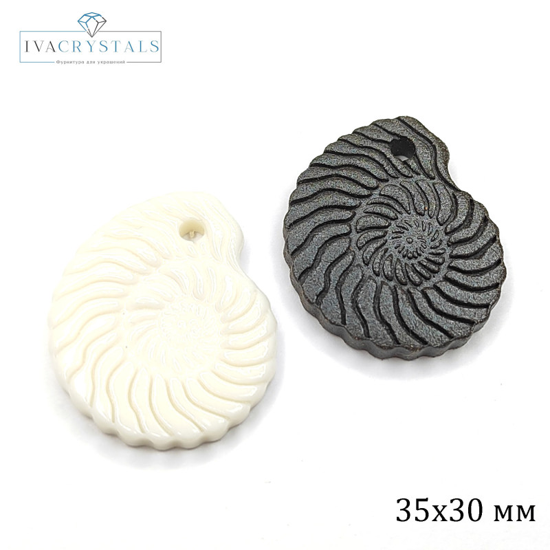 Купить Подвеска ракушка Наутилус 35х30 мм из белого фарфора и чёрной глины (ручная работа), штука вы можете в компании iva_crystals, оформив заказ в интернет магазине, или