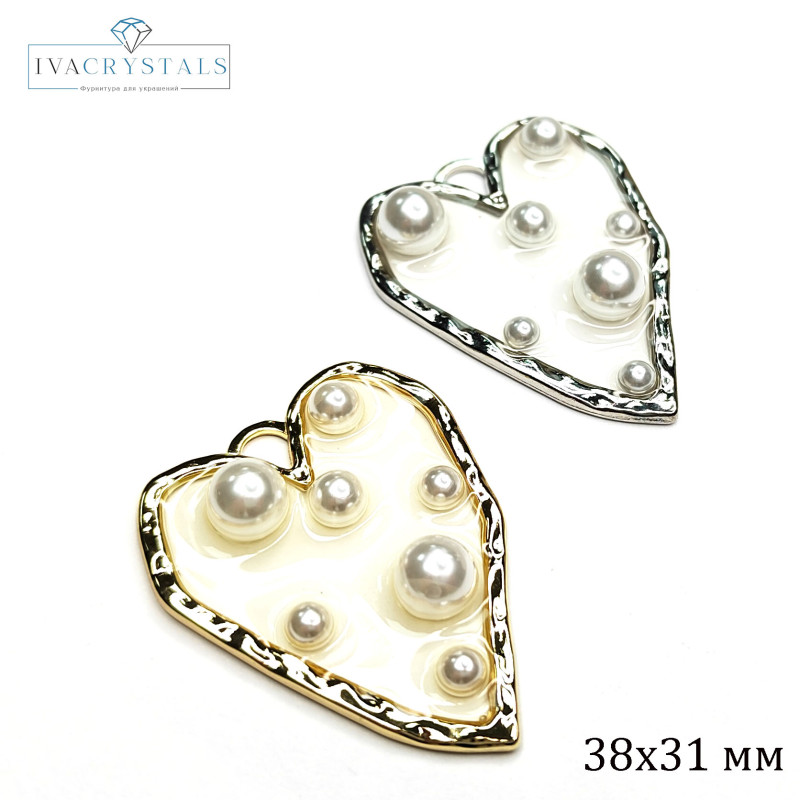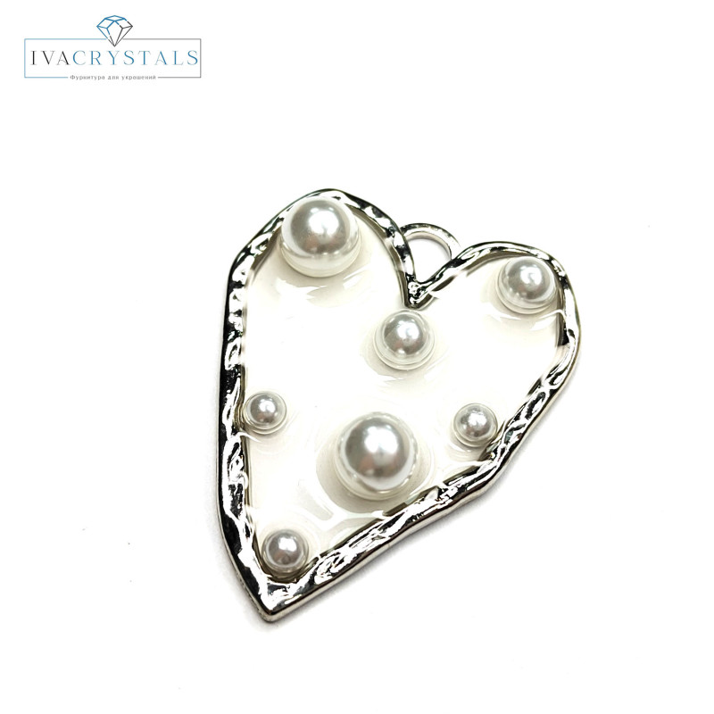 Купить Крупная подвеска Сердце 38х31 мм с прозрачным акрилом и жемчужинами, штука вы можете в компании iva_crystals, оформив заказ в интернет магазине, или