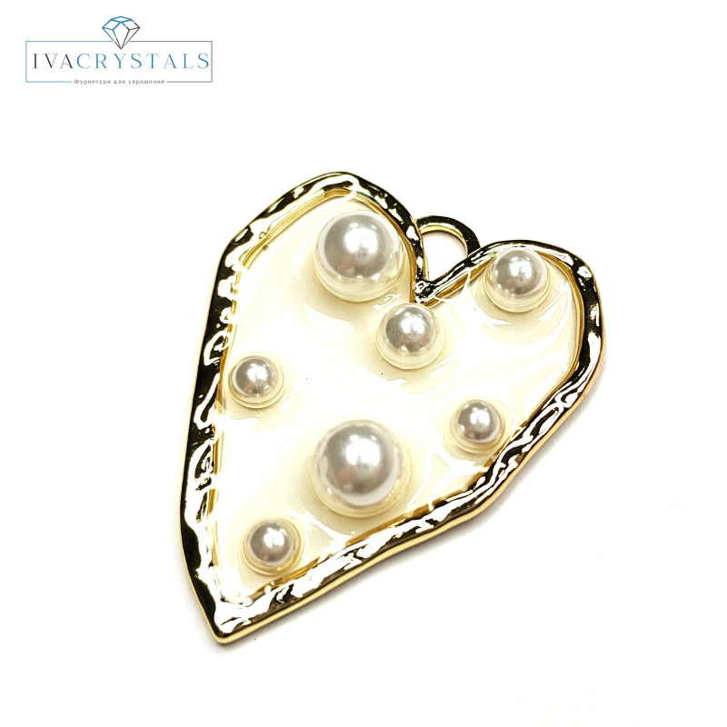 Крупная подвеска Сердце металлическая, с акрилом и искусственным жемчугом