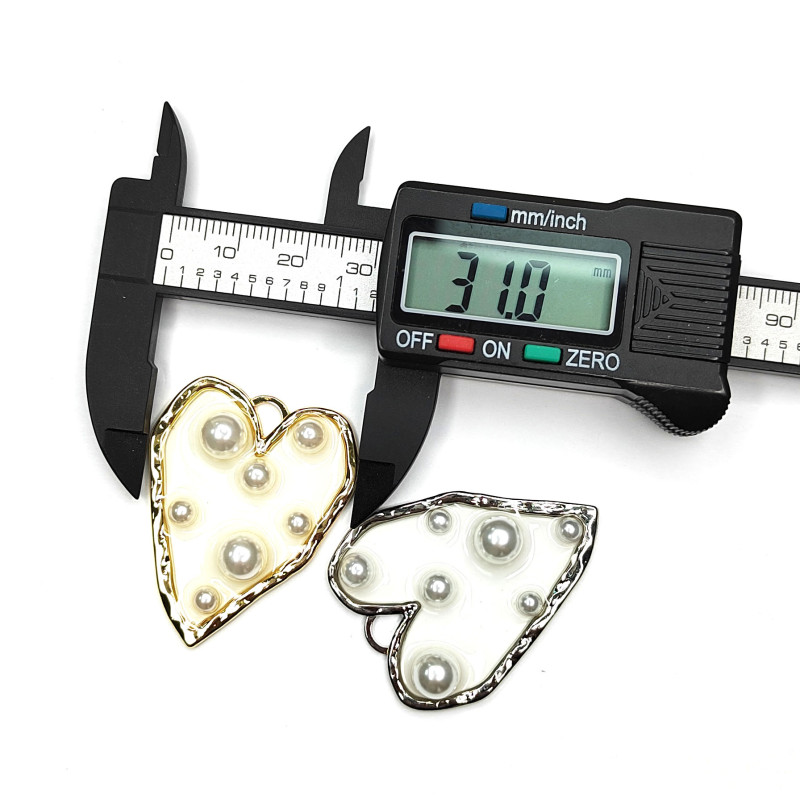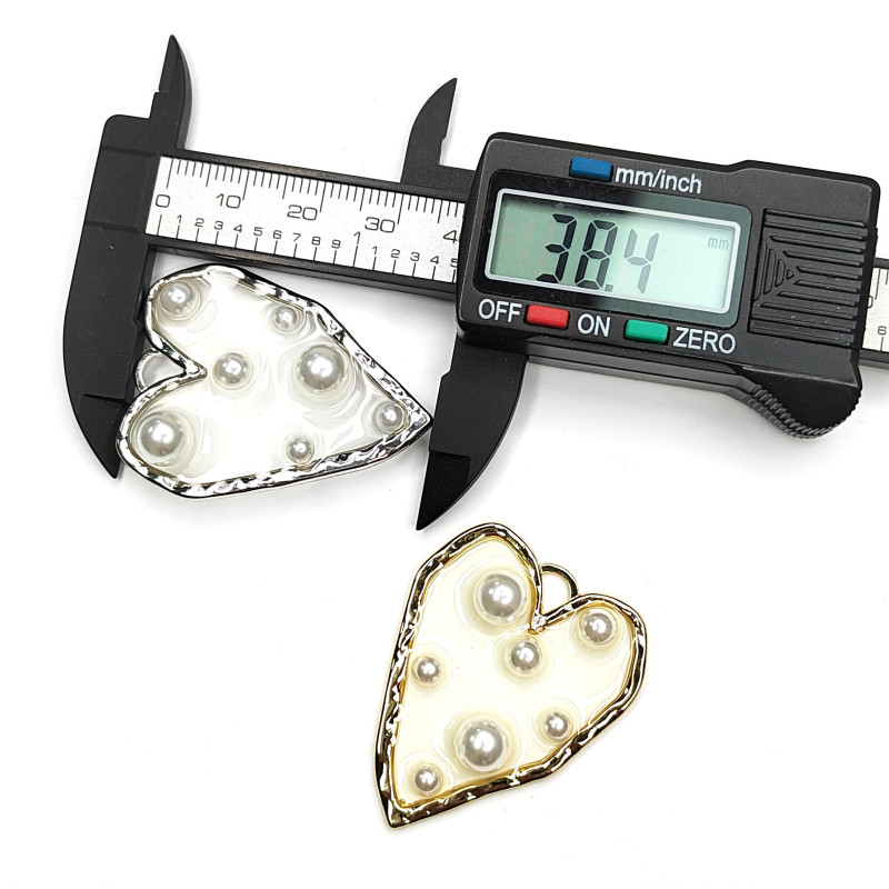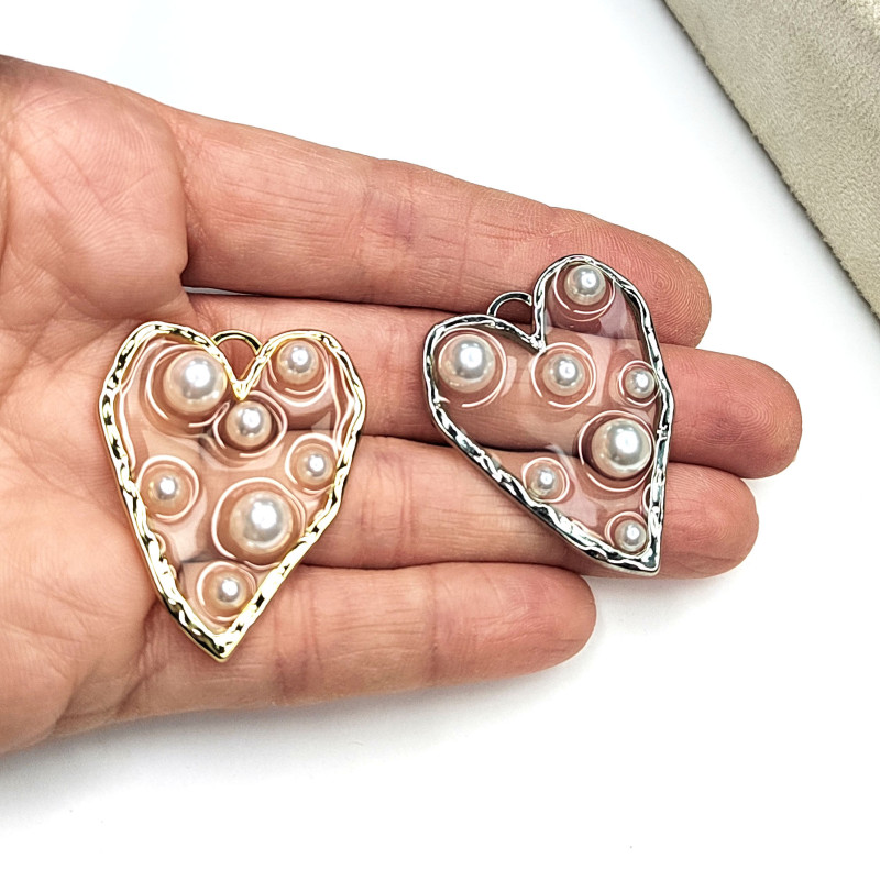 Крупная подвеска Сердце 38х31 мм с прозрачным акрилом и жемчужинами, штука
