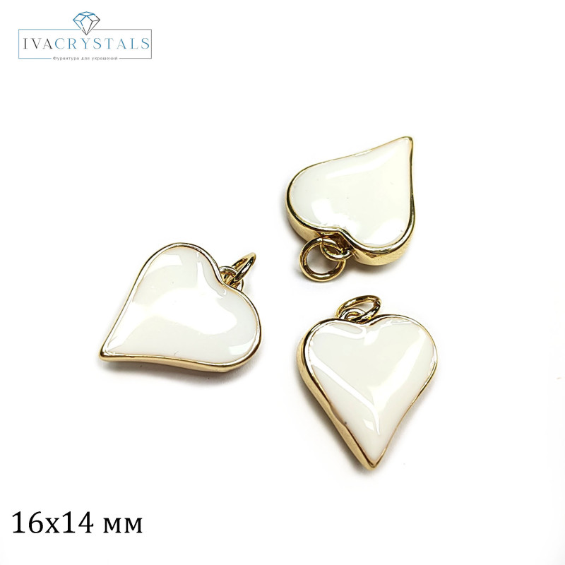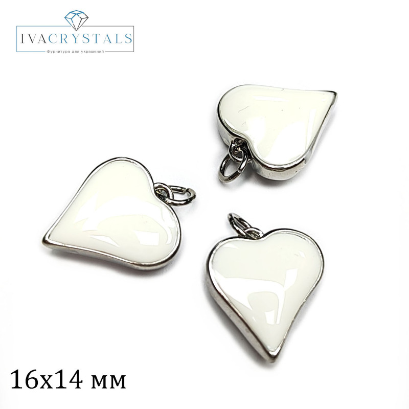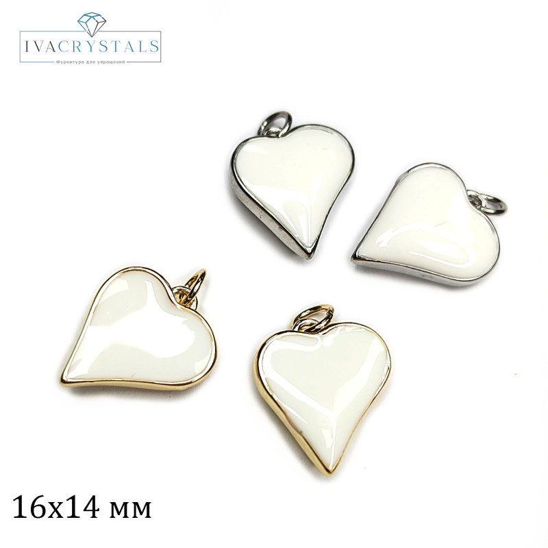 Купить Подвеска Сердце 16х14 мм с белой эмалью, штука вы можете в компании iva_crystals, оформив заказ в интернет магазине, или