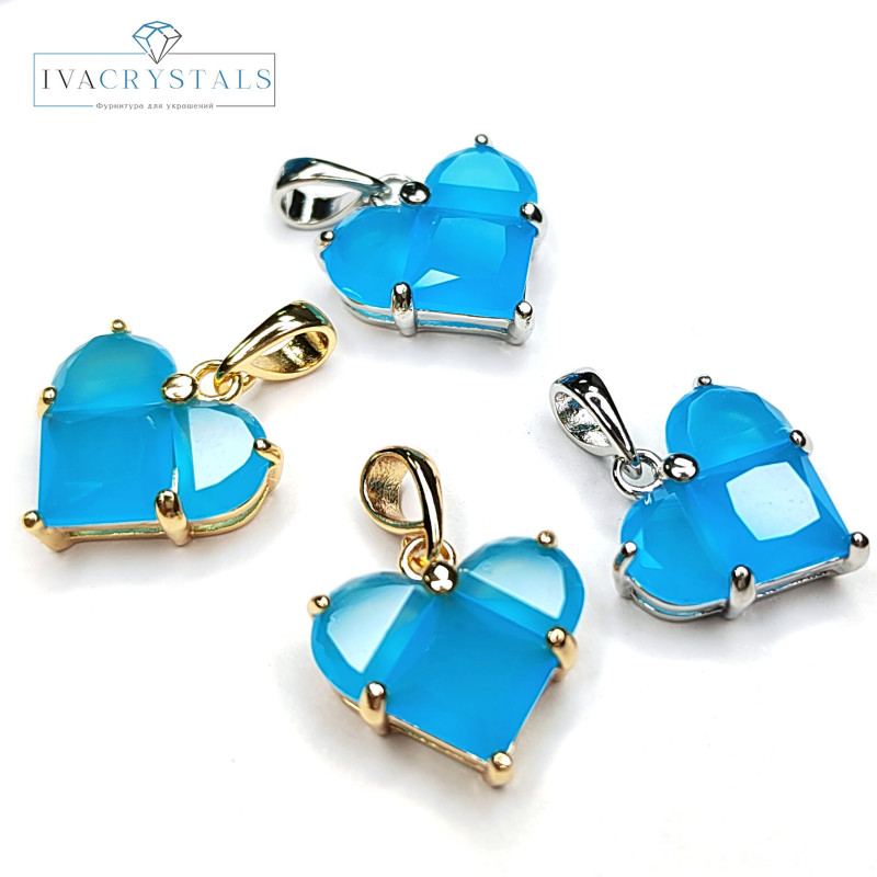 Купить Подвеска Сердце 14 мм с голубым матовым фианитом, штука вы можете в компании iva_crystals, оформив заказ в интернет магазине, или
