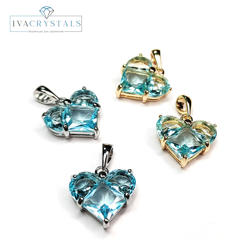 Купить Подвеска Сердце 14 мм с голубым фианитом, штука вы можете в компании iva_crystals, оформив заказ в интернет магазине, или