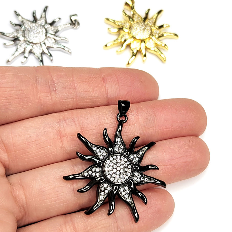 Подвеска Солнце 40х33 мм с фианитами, штука