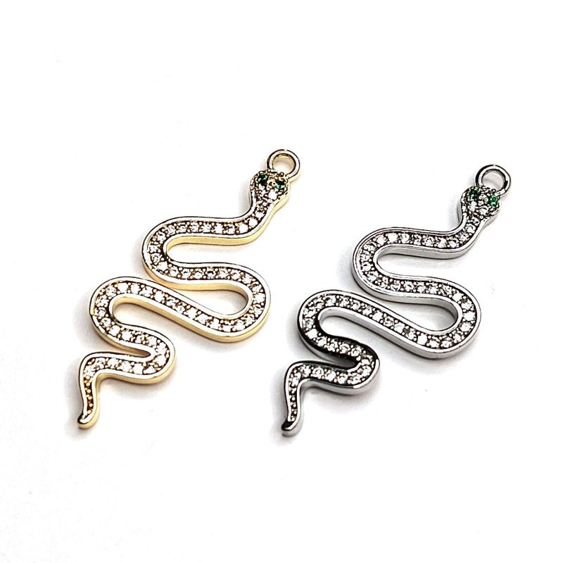 Подвеска Змейка 33х16 мм с фианитами, штука