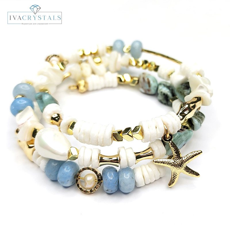 Набор фурнитуры для создания трёхрядного браслета (по мастер-классу)