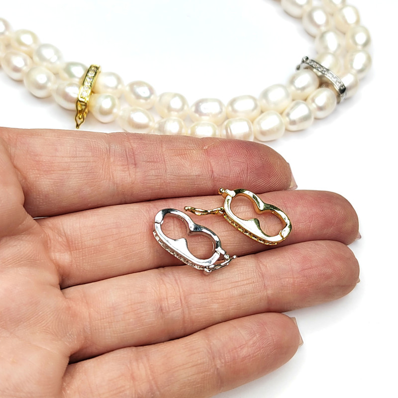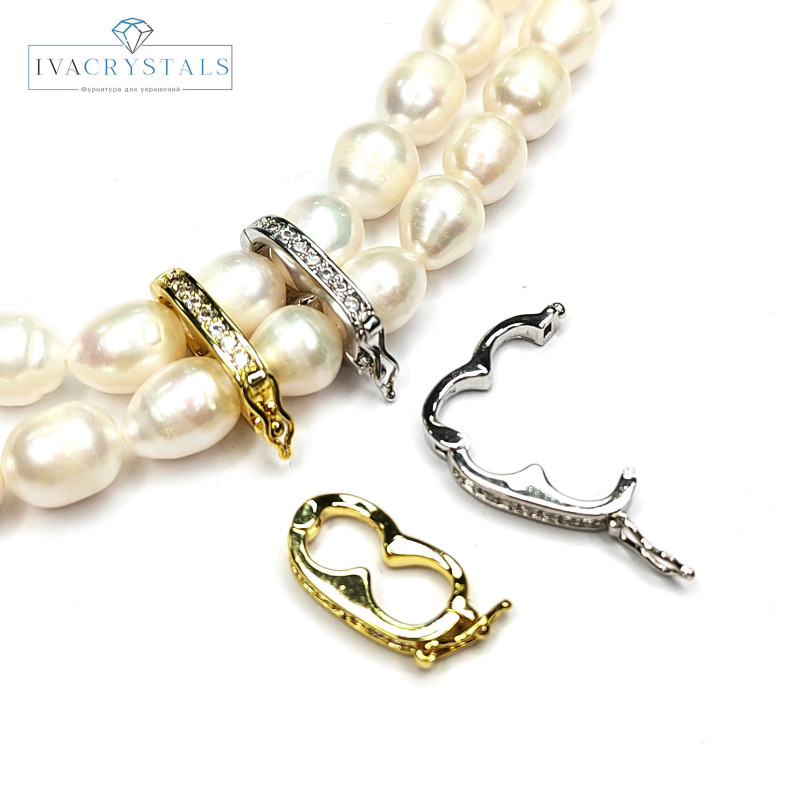 Бейл разъемный с фианитами, используется для чокеров, колье и других украшений.