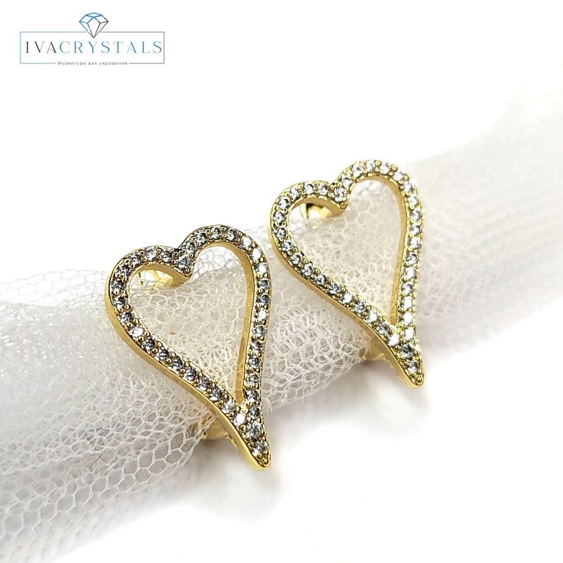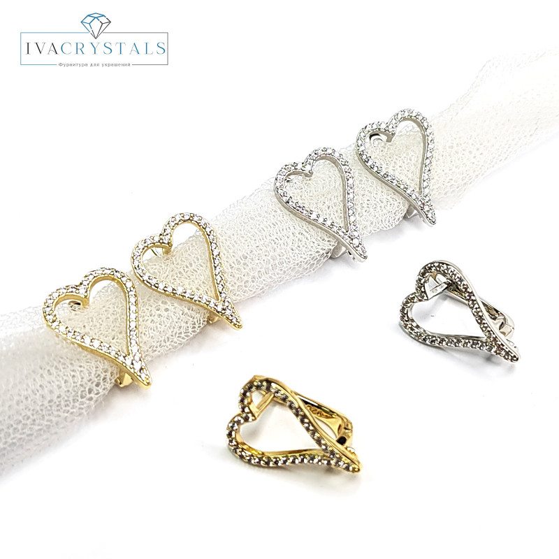 Купить Швензы Сердце 18х13 мм с фианитами, пара вы можете в компании iva_crystals, оформив заказ в интернет магазине, или