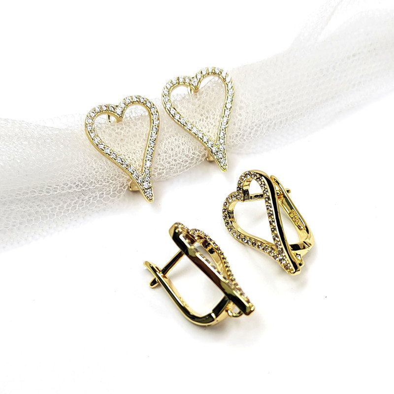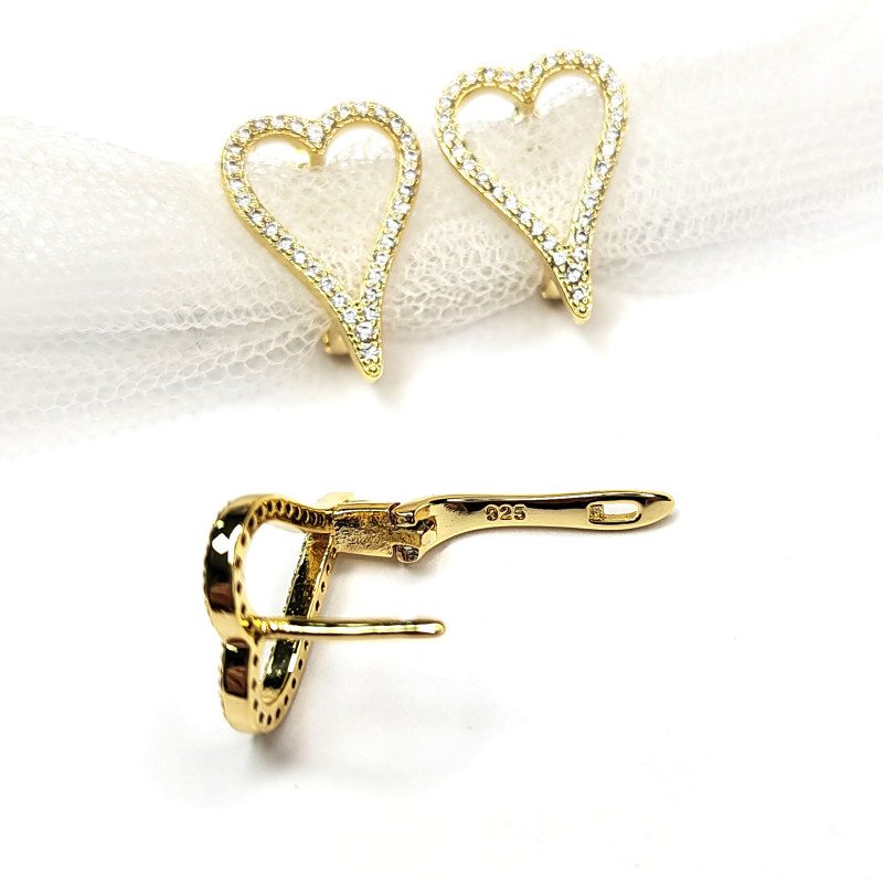 Швензы в форме вытянутых сердечек, инкрустированы фианитами.