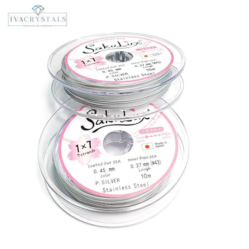 Купить 0,45 мм Японский Тросик ювелирный SakuLux, цвет Белый (P. Silver) вы можете в компании iva_crystals, оформив заказ в интернет магазине, или