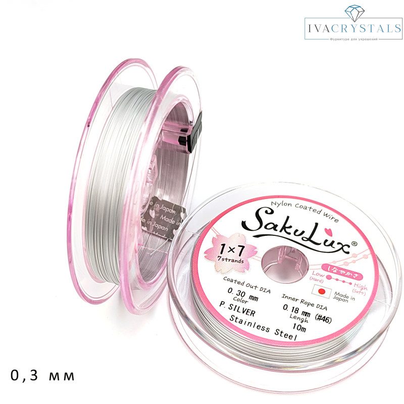 Купить 0,3 мм Японский Тросик ювелирный SakuLux, цвет Белый (P. Silver) вы можете в компании iva_crystals, оформив заказ в интернет магазине, или