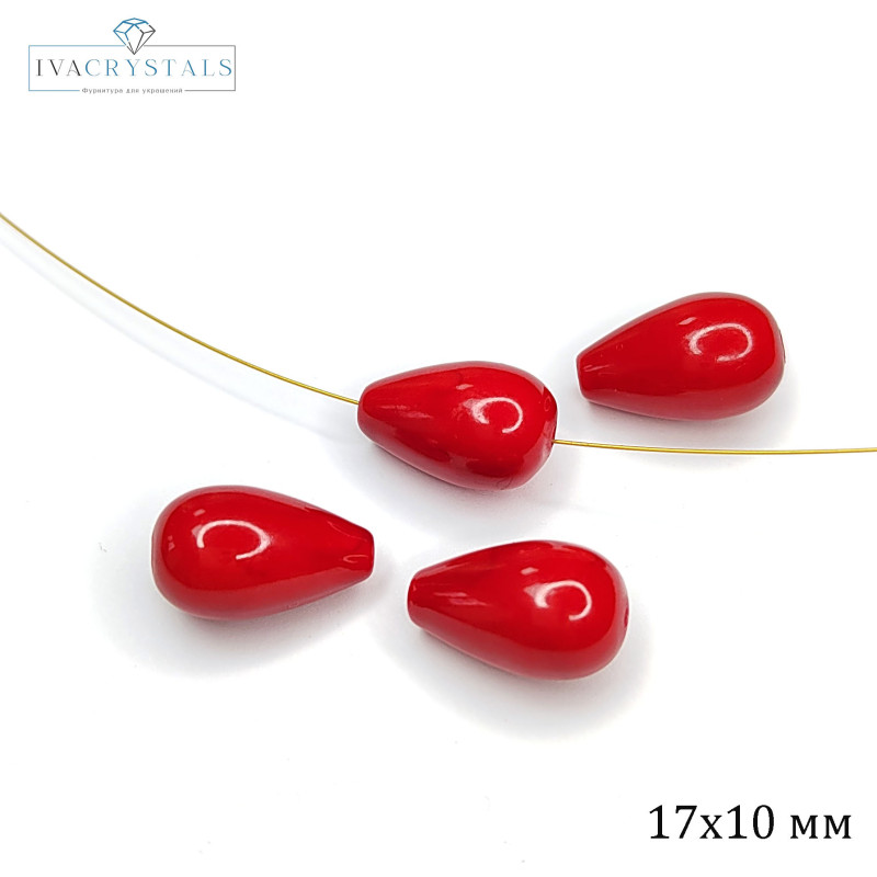 Купить Жемчуг майорка (стекло) Капля 17х10 мм, цвет красный, штука вы можете в компании iva_crystals, оформив заказ в интернет магазине, или