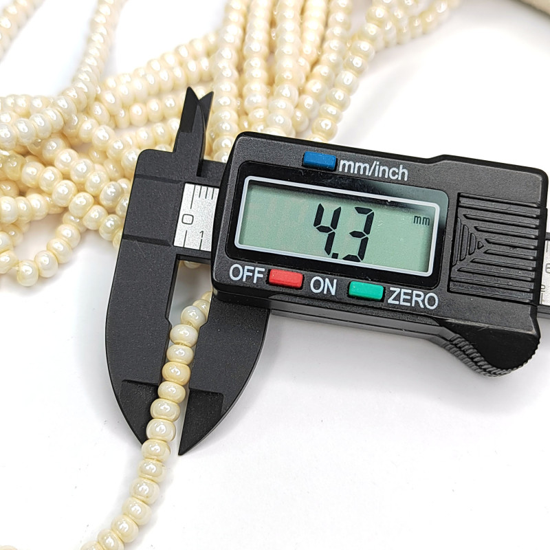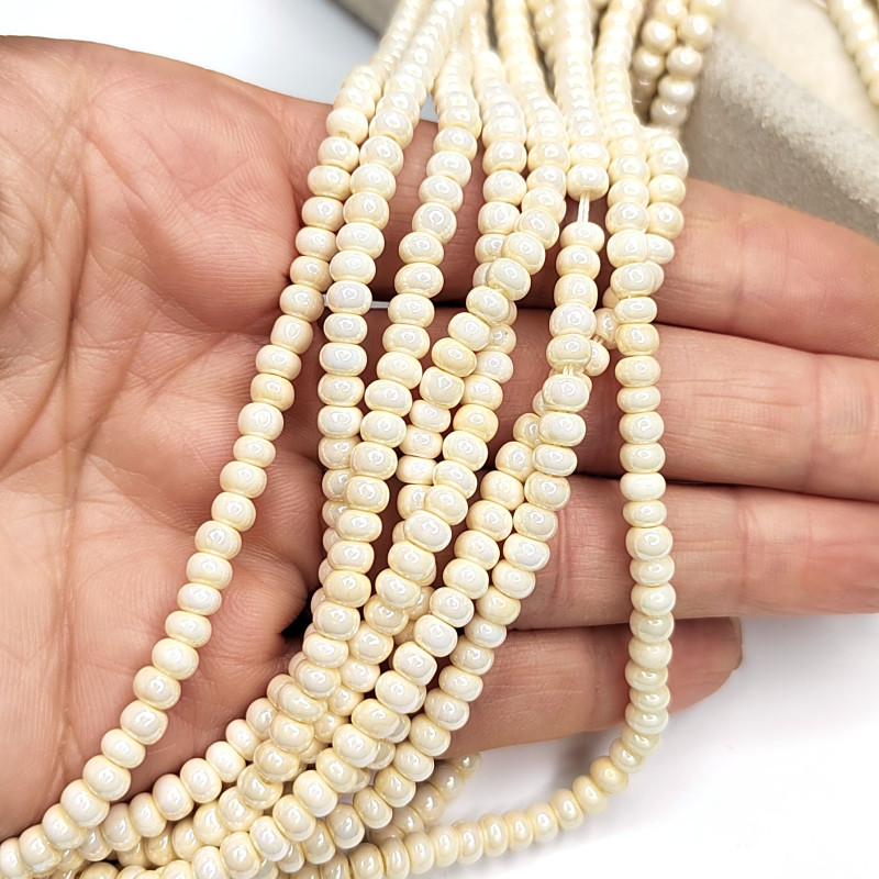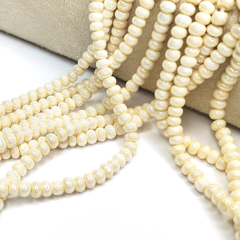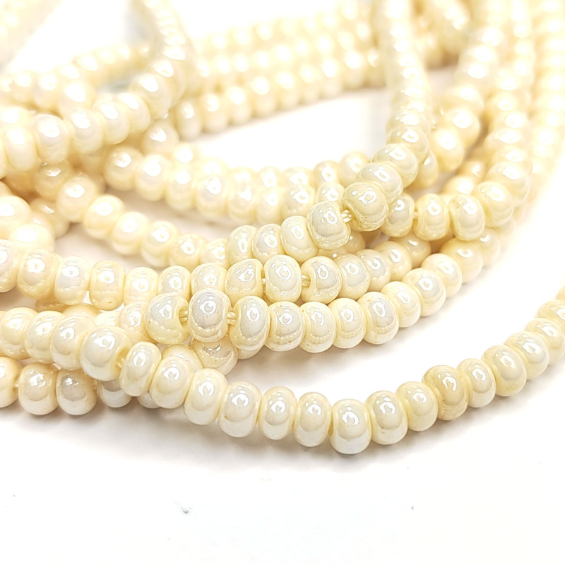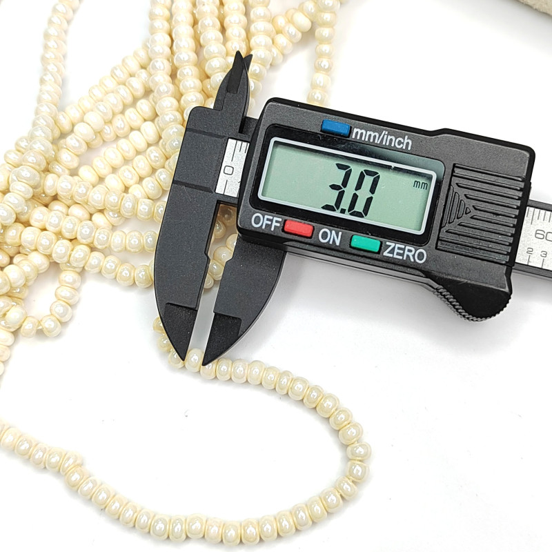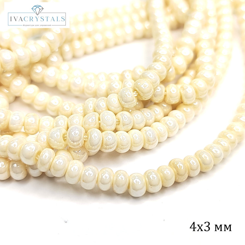 Майорка Стеклянный жемчуг 4х3 мм, цвет молочный (айвори), НИТЬ 32-33 см