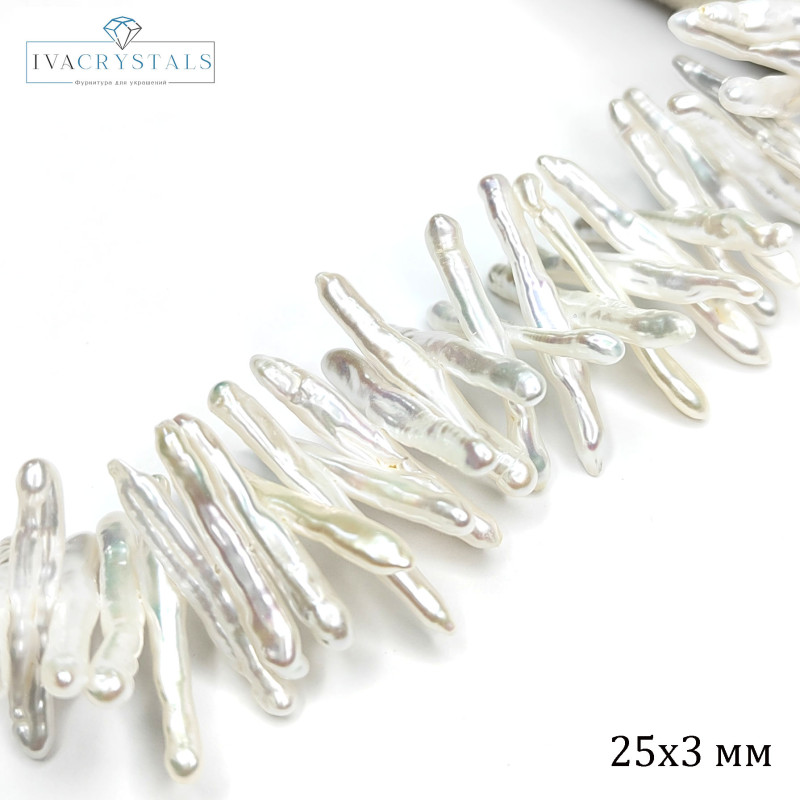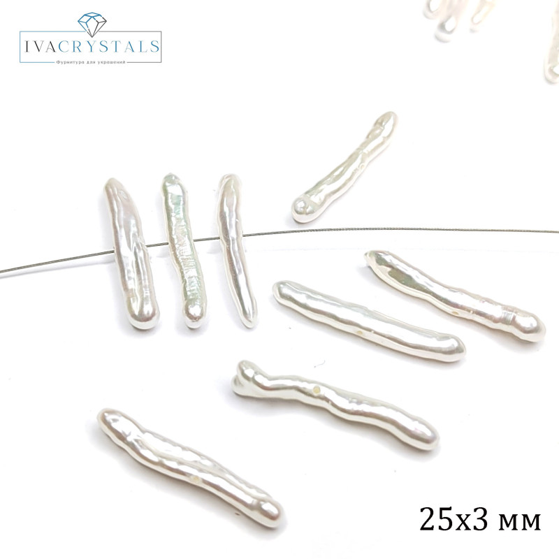 Купить Жемчуг натуральный Бива 25х3 мм белый, культивированный, поперечное сверление, ШТУКА вы можете в компании iva_crystals, оформив заказ в интернет магазине, или