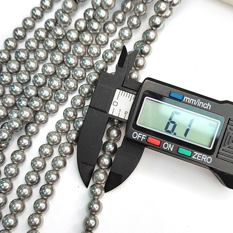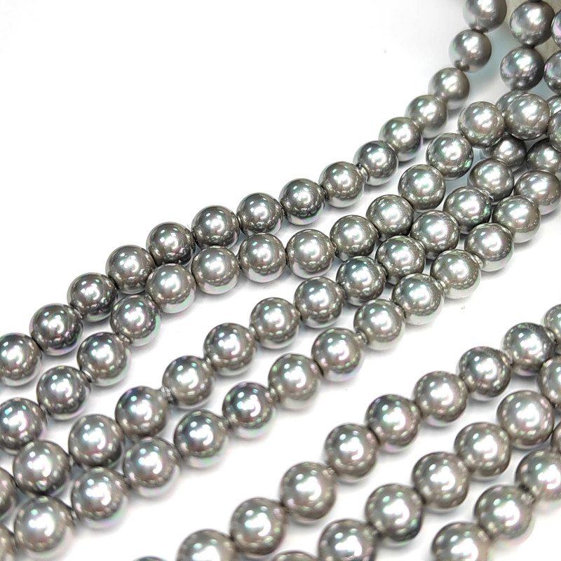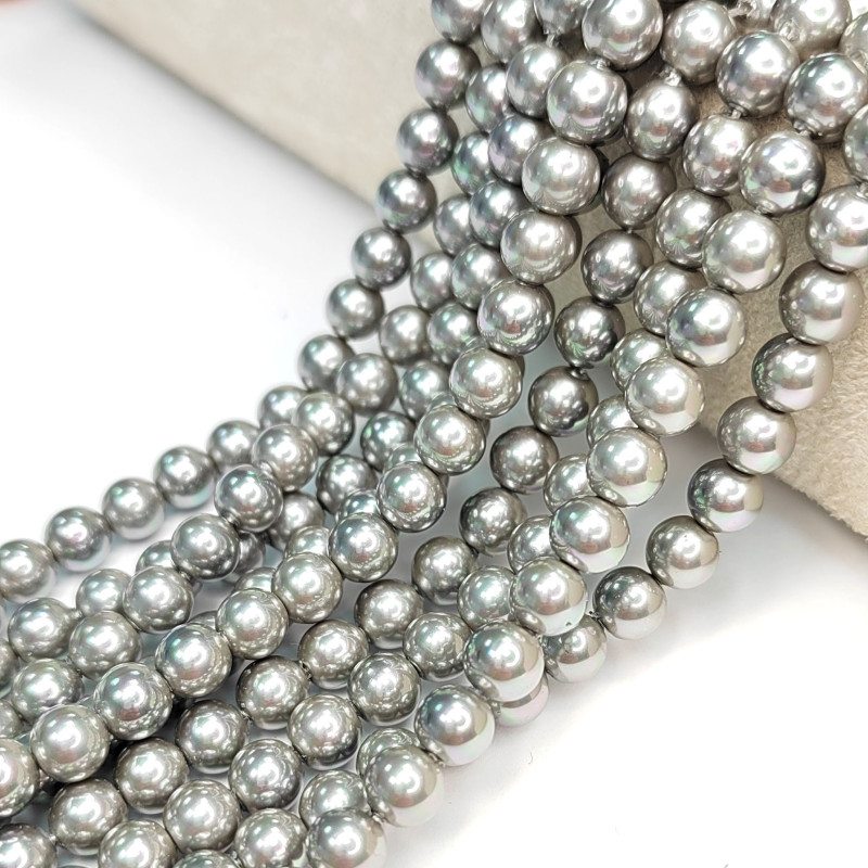 6 мм Жемчуг Майорка LUX Металлик, серебристый серый, нить 39-40 см