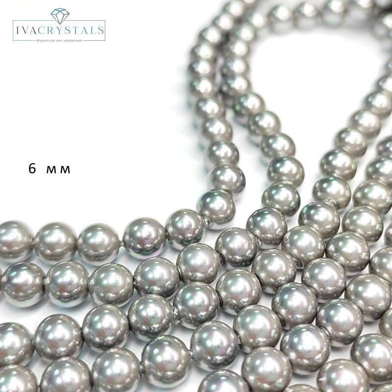 Купить 6 мм Жемчуг Майорка LUX Металлик, серебристый серый, нить 39-40 см вы можете в компании iva_crystals, оформив заказ в интернет магазине, или